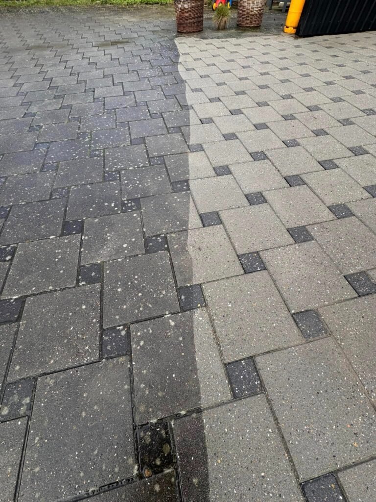 Professionel fliserens der effektivt fjerner snavs, mos og alger, genskaber flisernes oprindelige glans og farve.